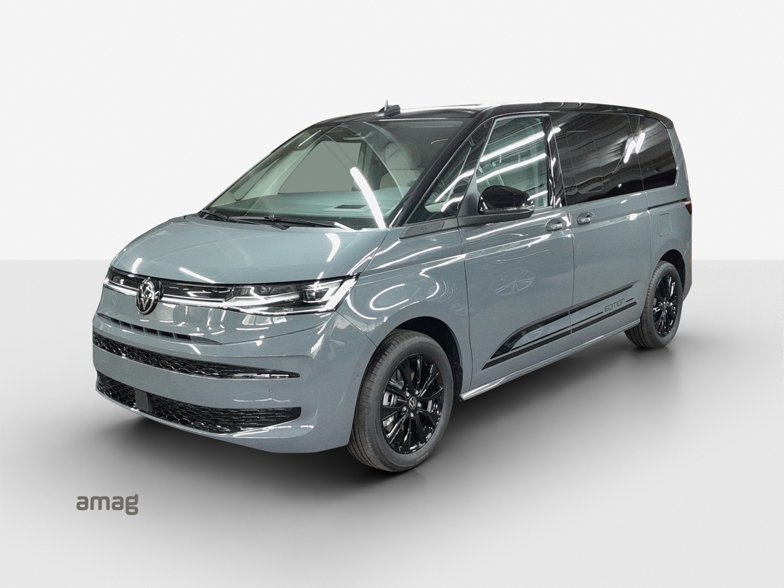 The new VW Multivan combines the most modern premium passenger car level with traditional all-rounder qualities, impresses with superior safety, expressive dynamics and charismatic design. Visually too, the new VW Multivan follows its predecessors with its clear, timeless design - but reinterprets the traditional design. The classic two-tone paint finish² is underlined in the new VW Multivan by a chrome band² that runs centrally from the headlights to the rear. The classy lighting design with the IQ.Light LED matrix headlights³ is complemented on the exterior by the standard LED rear lights and the projection light⁴ - because your new van welcomes you and projects the VW Multivan silhouette onto the ground when you get in. The new exterior design is completed by a large selection of classy colours and rims, such as the new 19-inch rims² - so you can design your new VW Multivan entirely according to your personal taste.