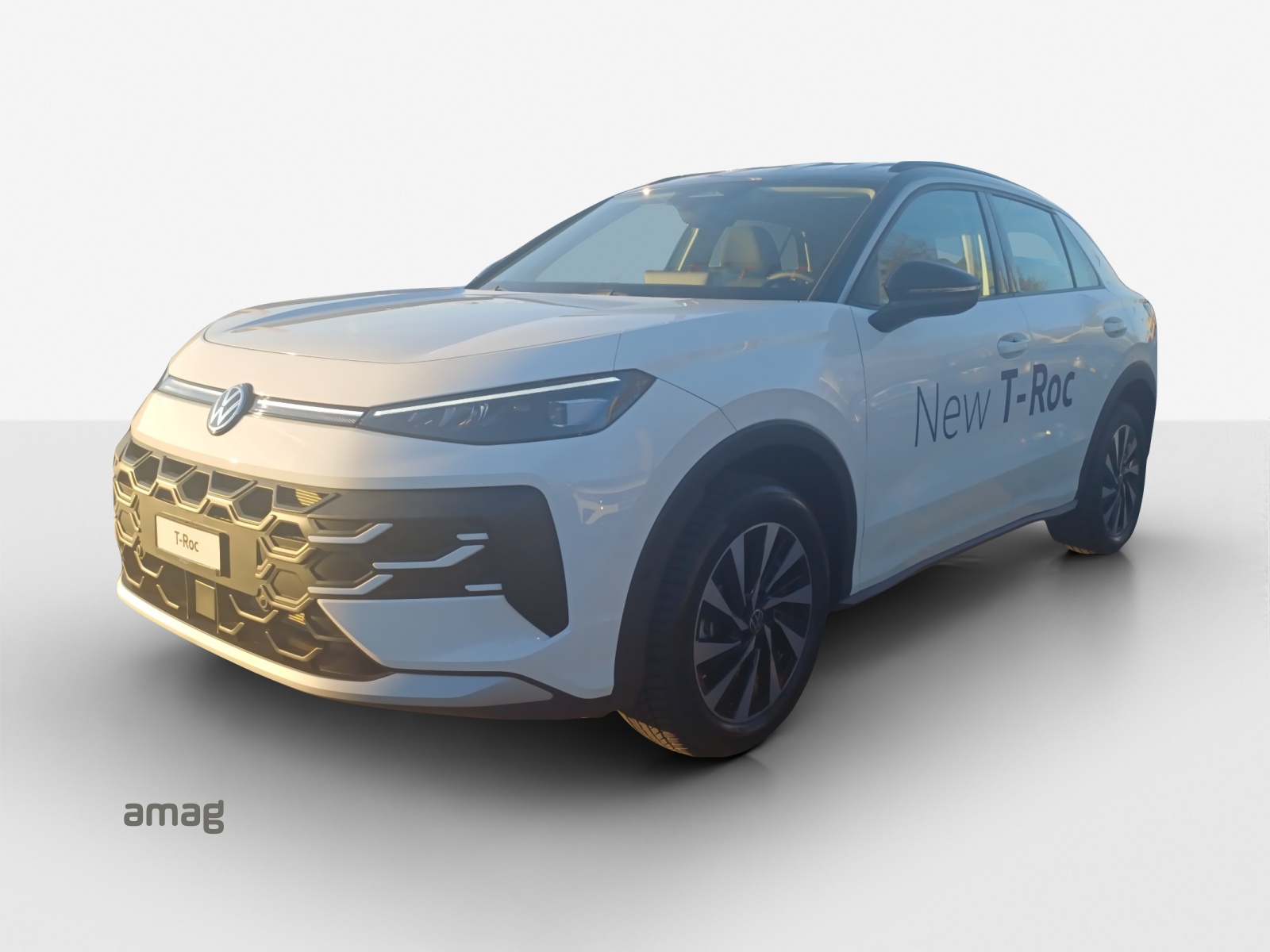 *Volkswagen T-Roc NF Trend, 115 hp/85 kW, automatic 7-speed DSG front-wheel drive, 5.7 l/100 km, 131 g CO₂/km, category: E. Vehicle price including flat fee for delivery: CHF 29,820. Displayed model: Volkswagen T-Roc NF R-Line, 1.5 eTSI, 150 hp/110 kW, automatic 7-speed DSG front-wheel drive, 6 l/100 km, 137 g CO₂/km, category: E. Optional extras: Canary Yellow solid, Black solid, ‘Black Style’ design package, 8J x 20 ‘Calgary’ alloy wheels, black – 225/40 R20 tyres. Vehicle price including flat fee for delivery: CHF 41,530. Valid until 31.12.2025 on new and warehouse vehicles imported by AMAG Import AG. Existing sales contracts cannot be adjusted retroactively. Only for participating AMAG companies. Subject to change.
